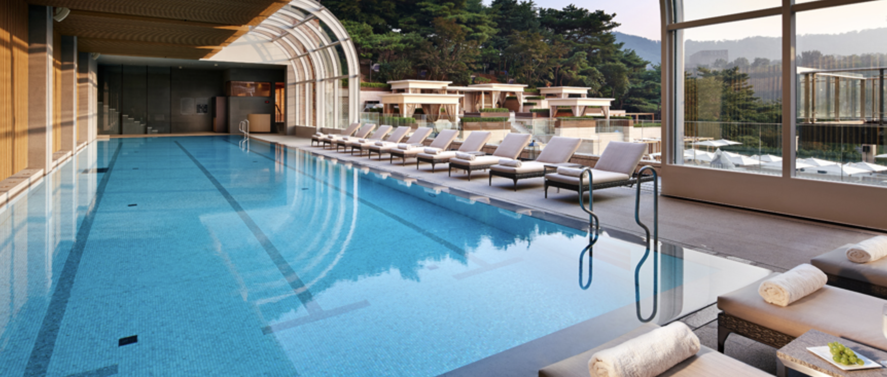 - 실내 수영장은 3층에 위치해있으며, 이용 시간은 06:00~22:00입니다. 참고로, 이그제큐티브 룸 등급에서는 실내 수영장은 이용 가능하지만 어반 아일랜드로 불리는 야외 수영장은 따로 이용권을 구매해야 이용 가능합니다.
