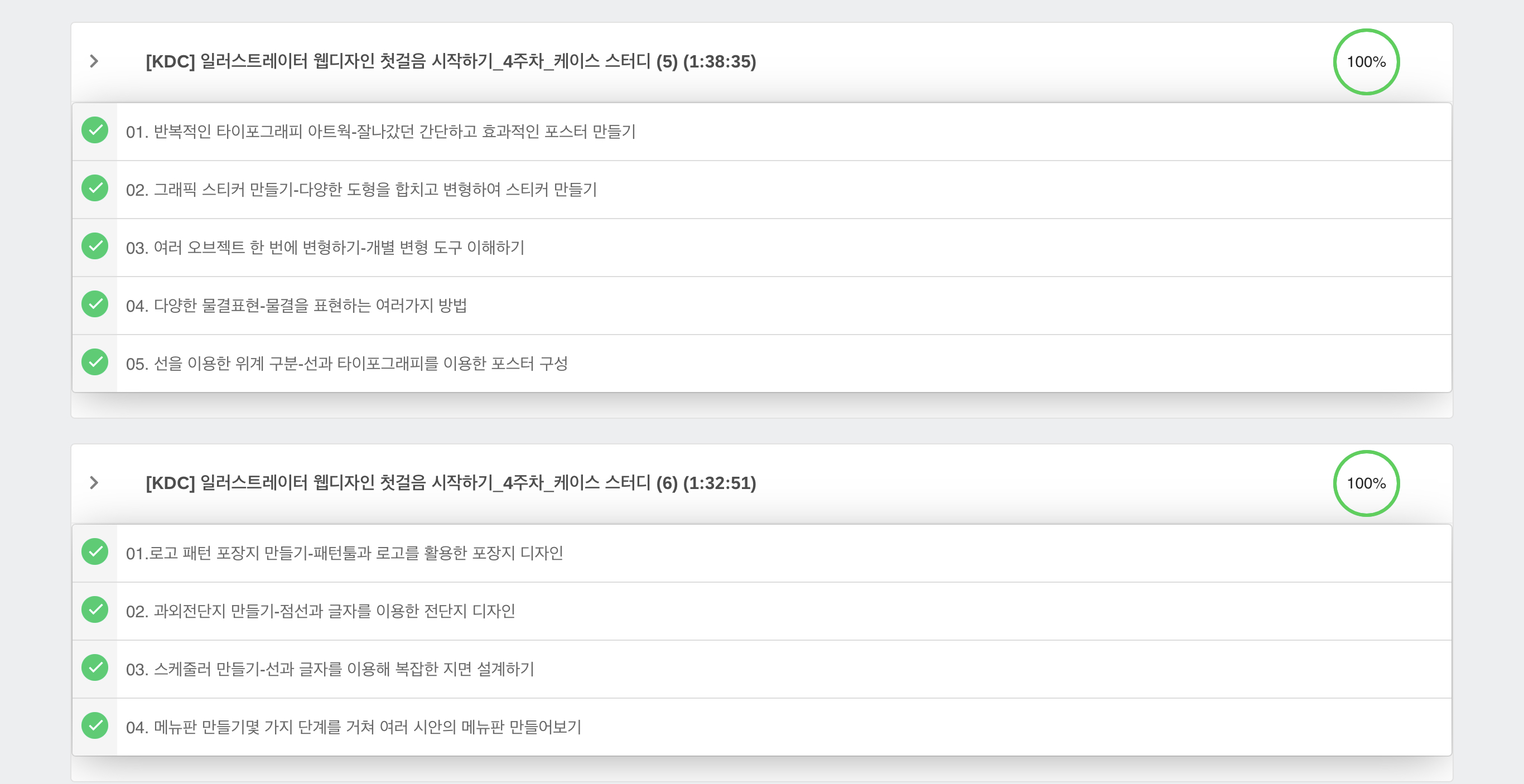 4주차 강의를 모두 수강했다. 일러스트레이터를 처음 접하는 사람에게 해당 강의 자체는 난이도가 조금 있을 것 같다. 그래도 부담스럽지 않은 분량이라 하루하루 천천히 따라갈 수 있어서 초보들에게도 적합한 것 같다. 이번 주차까지 모두 수강해보니 일러스트레이터로 다룰 수 있는 다양한 형태들을 많이 다뤄 볼 수 있었다. 포스터, 명함, 그래픽 디자인부터 시작해서 스티커, 스케쥴러, 포장지, 메뉴판 등 다양한 아트웍을 만들어보는 재미가 있었다. 또한, 정보를 디자인으로 전달하는 방법에 대해서도 배울 수 있어 좋았다. 일러스트레이터가 활용도가 당연히 높다고는 생각했지만 어떻게 활용하는지 예제를 따라해보며 더 습득을 잘 할 수 있었다.