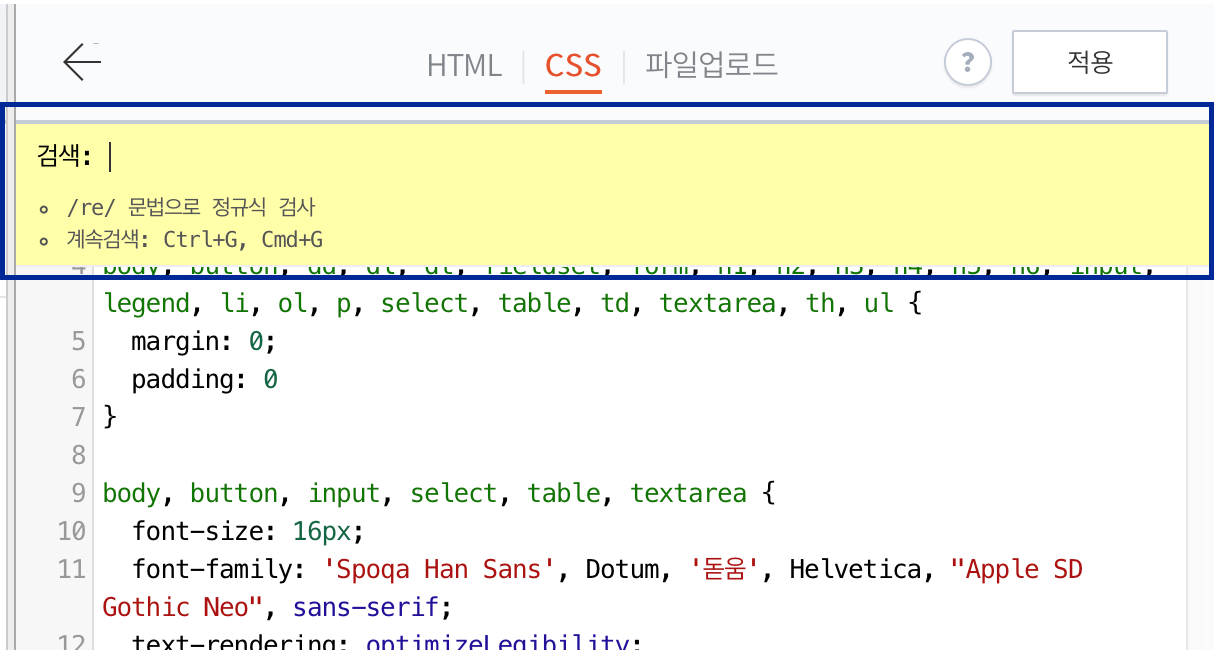 ctrl+f (윈도우) / cmd+f로 노란색 검색창을 띄워 'post-body-font-size' 를 검색해주세요