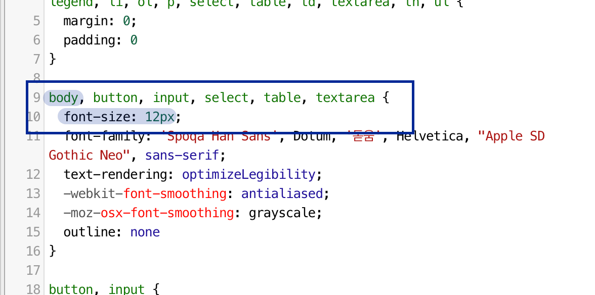css에 들어갔을 때 처음에 body 영역의 font-size가 보이지 않는다면